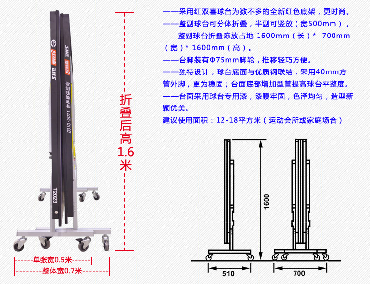 檯面採用高強度壓縮特殊木材,檯面彈性及磨擦系數達到比賽標準