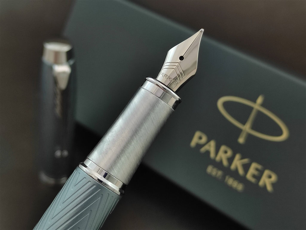 Parker IM Premium系列藍灰色曲線幾何紋墨水筆(PN-IM-PRM-BGRY-CT-F)